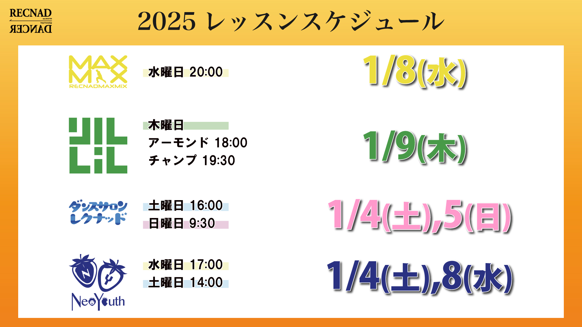 2025年「RECNAD」ダンススクール・ダンスコミュニティ RECNADより3つのお知らせ ①12周年記念プレゼント …