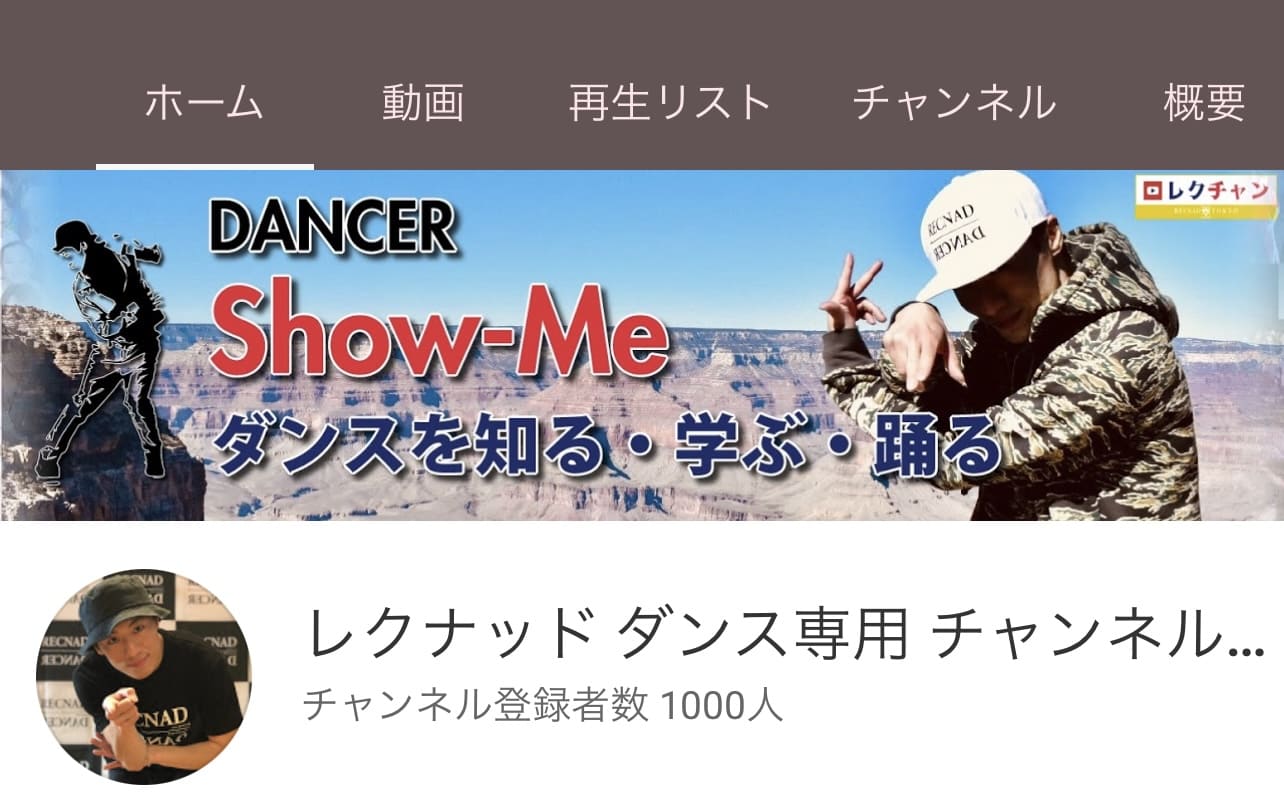 YouTube レクナッド ダンス専用 チャンネル 登録者1000人突破