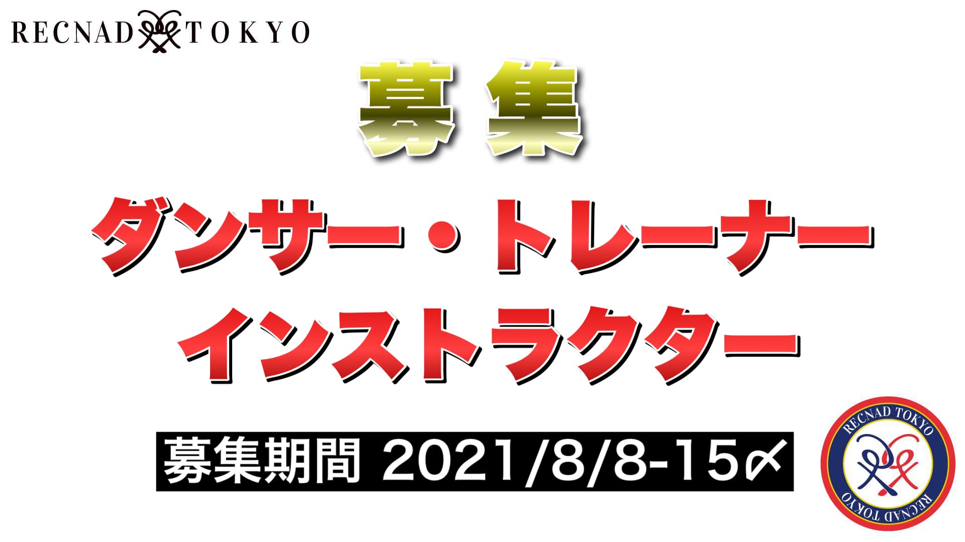 2021 ダンサー トレーナー インストラクター募集 | RECNAD TOKYO