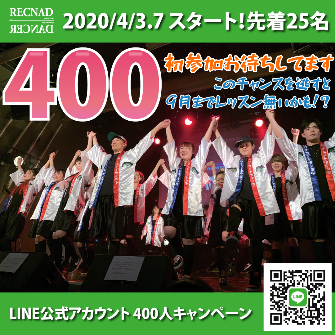 東京 社会人ダンスサークル RECNAD 400人キャンペーン情報 | 2020/4〜