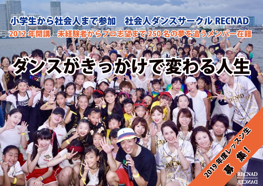 【おすすめ 日本 ダンススクール 】 社会人 ダンスサークル RECNAD 【 ダンス 未経験者 初心者 経験者 まで幅広い年齢層のメンバー在籍 】