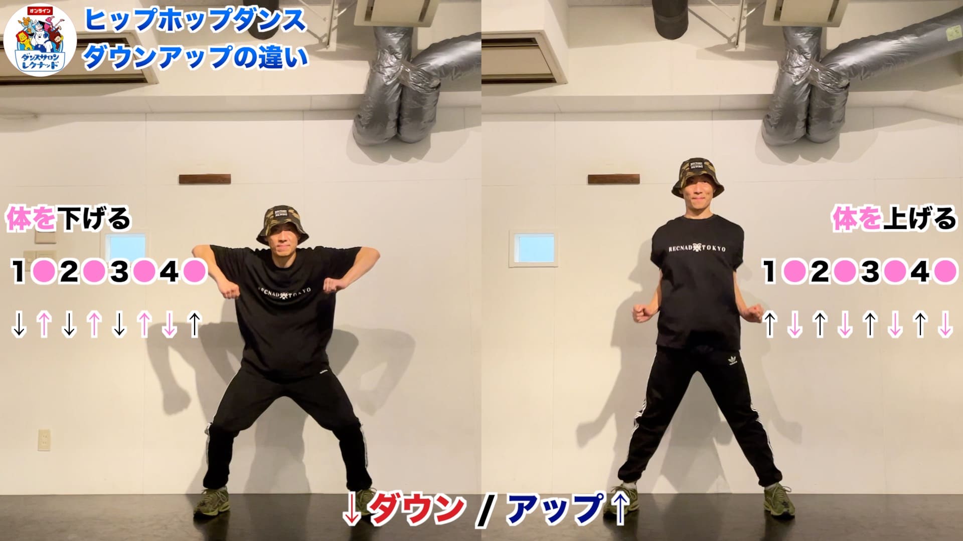 【 ダンスの教科書 】プロが指導する 膝の曲げ伸ばし ダウンアップ のノリ、リズムの取り方とその重要性「ヒップホップダンス初心者用 お家でダンス簡単練習動画」ダンス練習だけでなく、創作ダンス、体育の授業の指導にお役立て下さい 株式会社RECNAD TOKYOのダンス指導、教育事業